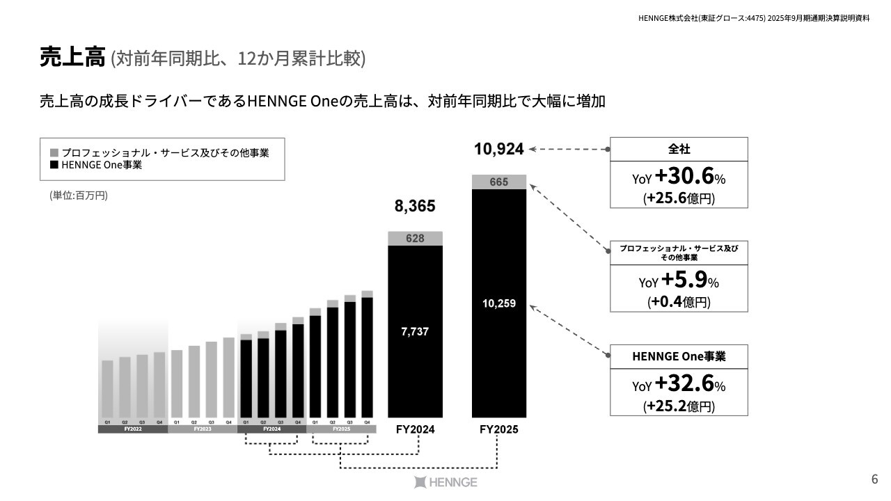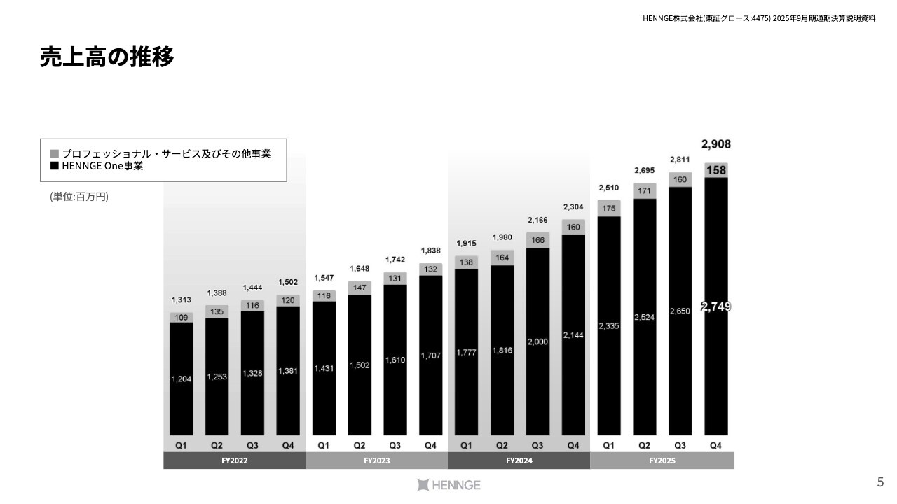 連結売上高の四半期ごとの推移は、スライドのとおりです。HENNGE One事業の売上高はすべてリカーリングの性質の売上高であり、四半期ごとに増加する傾向となっています。