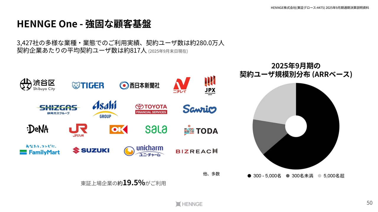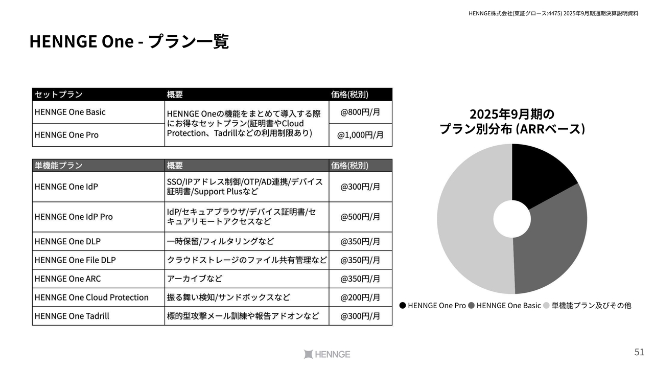 その結果、2025年9月末時点ではARR構成比が約17パーセントに達しました。HENNGE One Proの魅力が評価される余地は多分にあると考えていますので、2026年9月期も引き続き、できる限り構成比を高めていきたいと考えています。