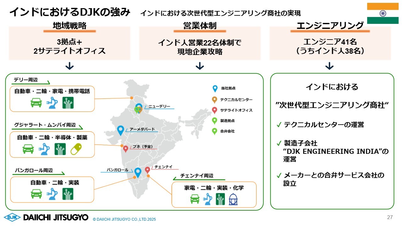 インドでのビジネス拡大に向けた戦略的事業投資の一例です。まず、DJK ENGINEERING INDIA社の設立背景についてお話しします。