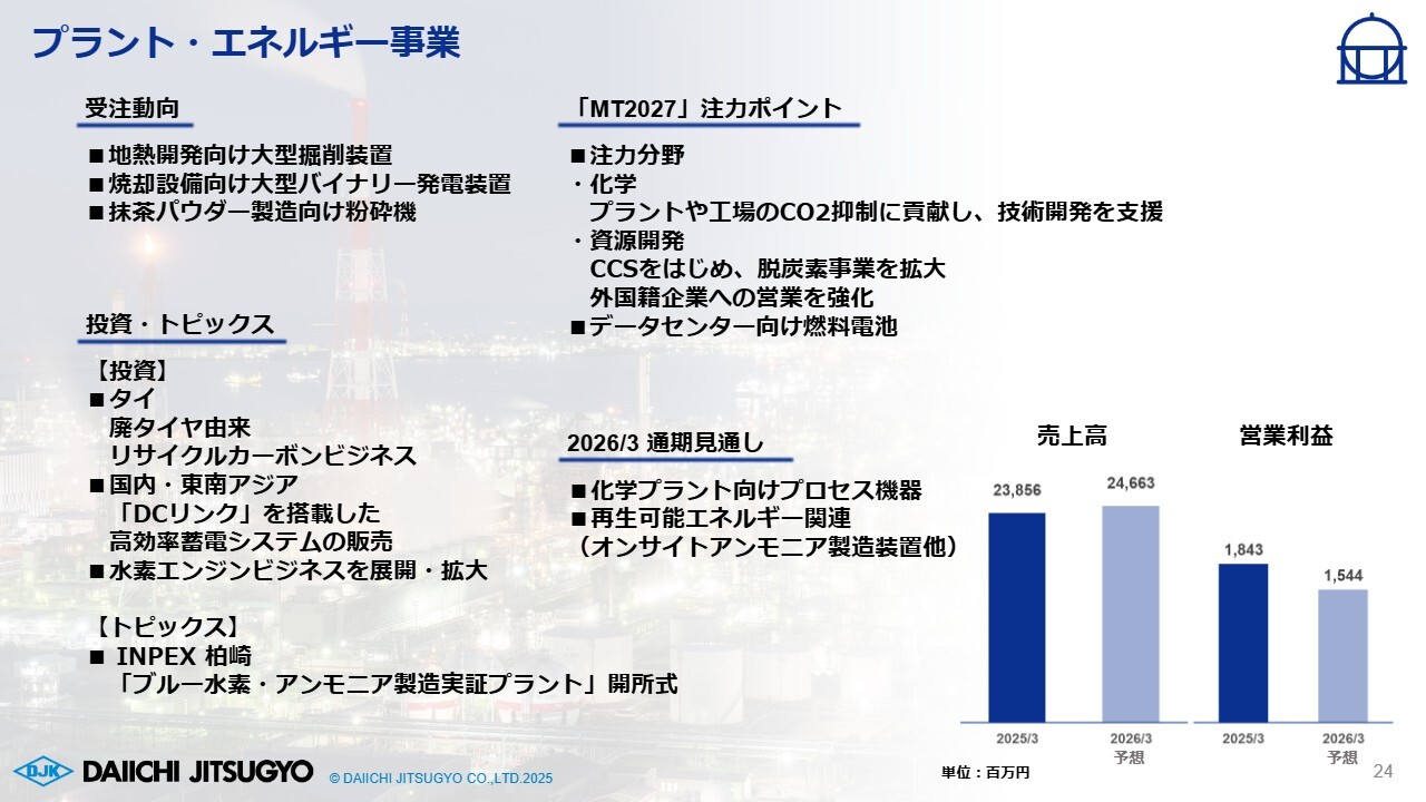 府川:この予定で進めばそのようになるのですが、まずは現在の受注状況、特に下半期の受注高や今期の受注高をしっかり積み上げることが重要です。それにより、2026年度の営業利益が確保できますので、まずは確実に受注を増やしていきたいと考えています。数字に変更があれば、あらためて報告します。