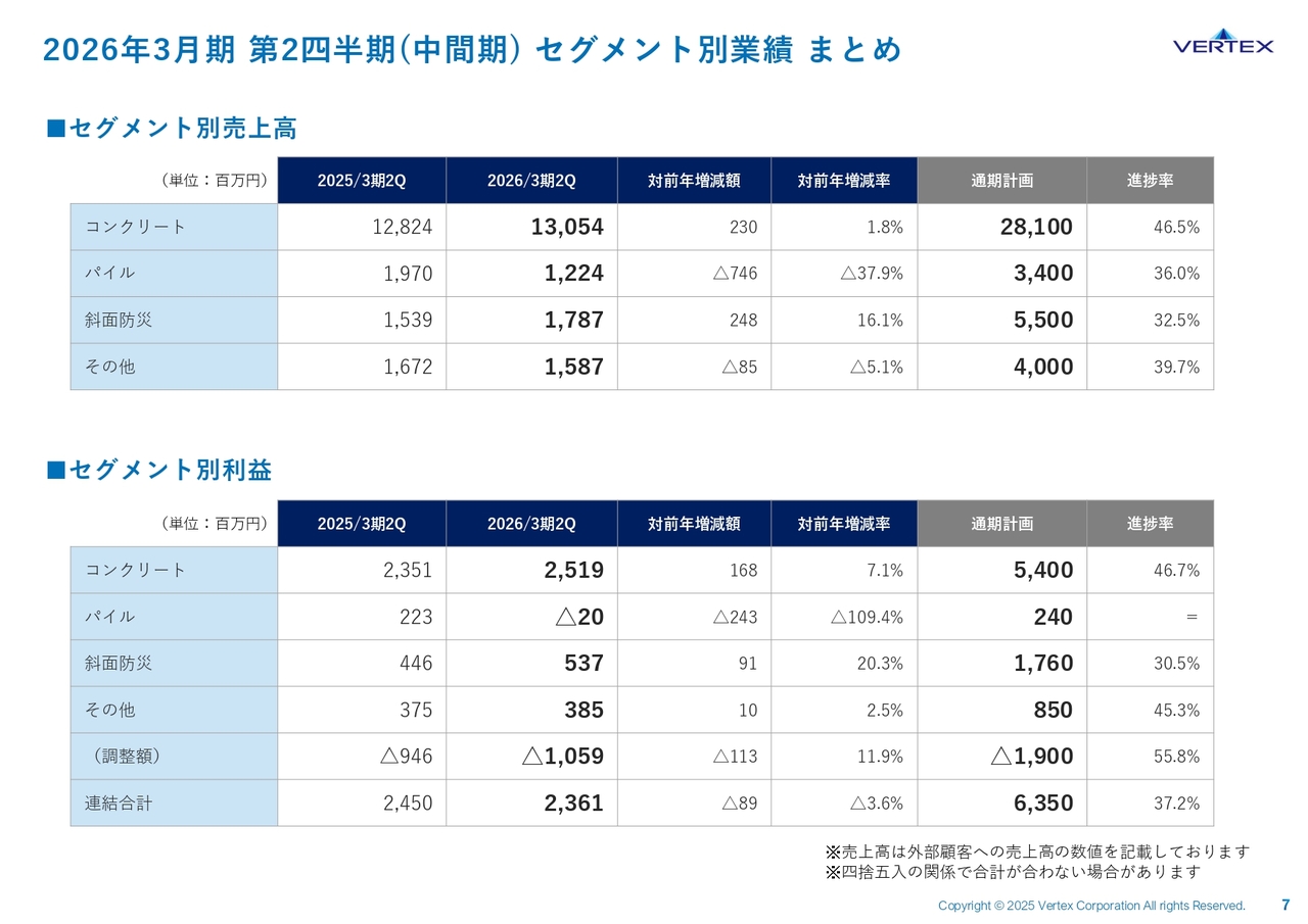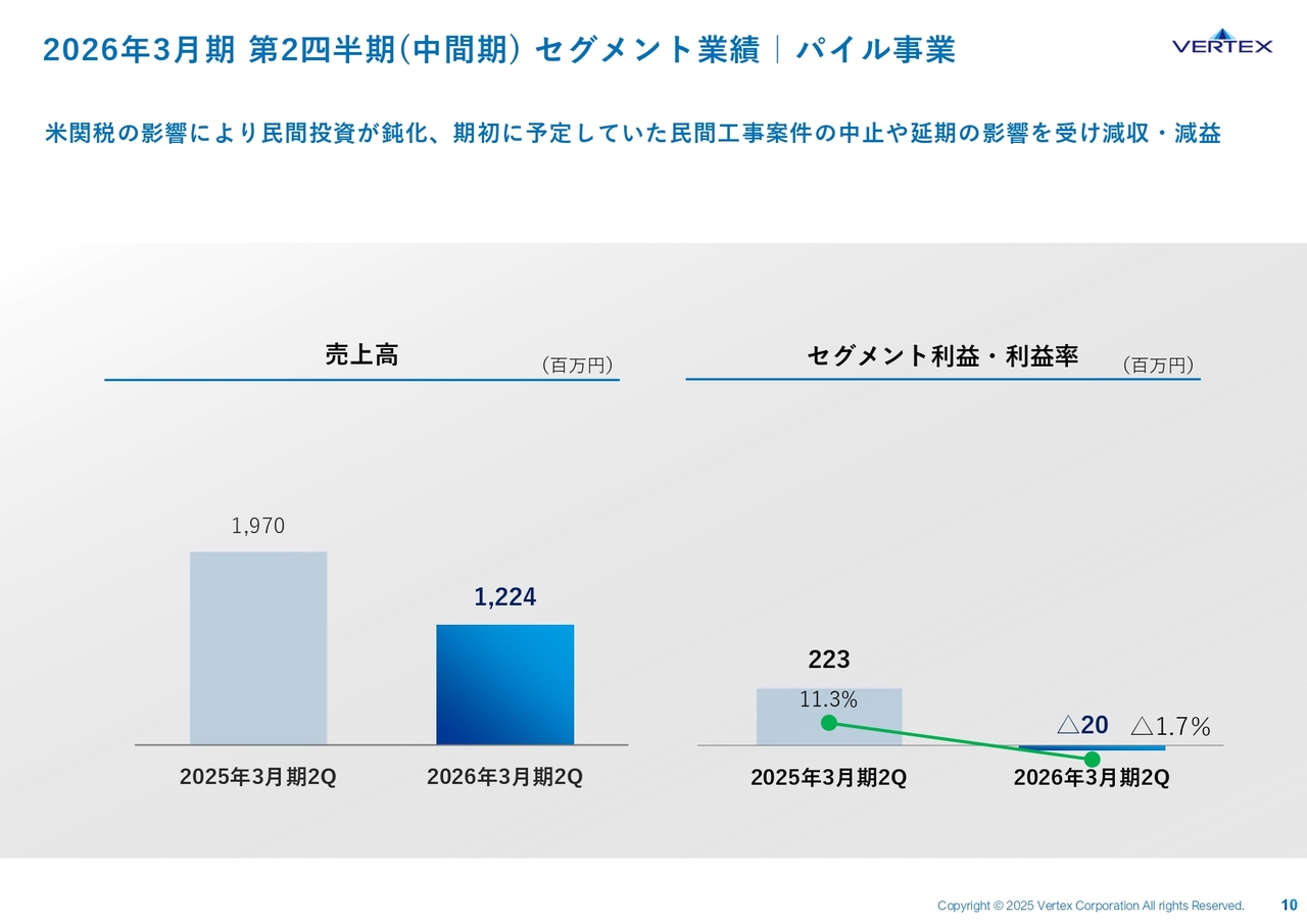 2026年3月期第2四半期(中間期)セグメント業績|パイル事業