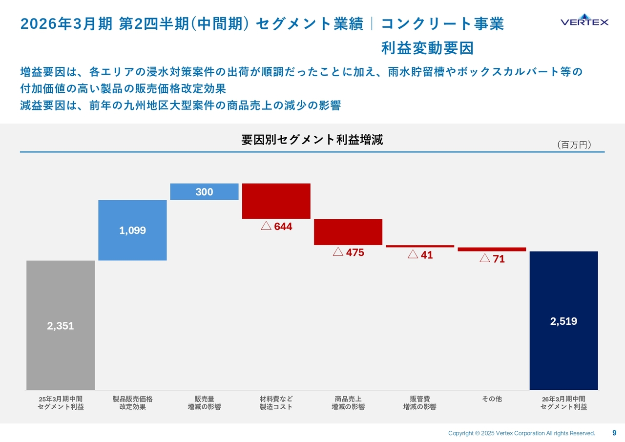 2026年3月期第2四半期(中間期)セグメント業績|コンクリート事業 利益変動要因