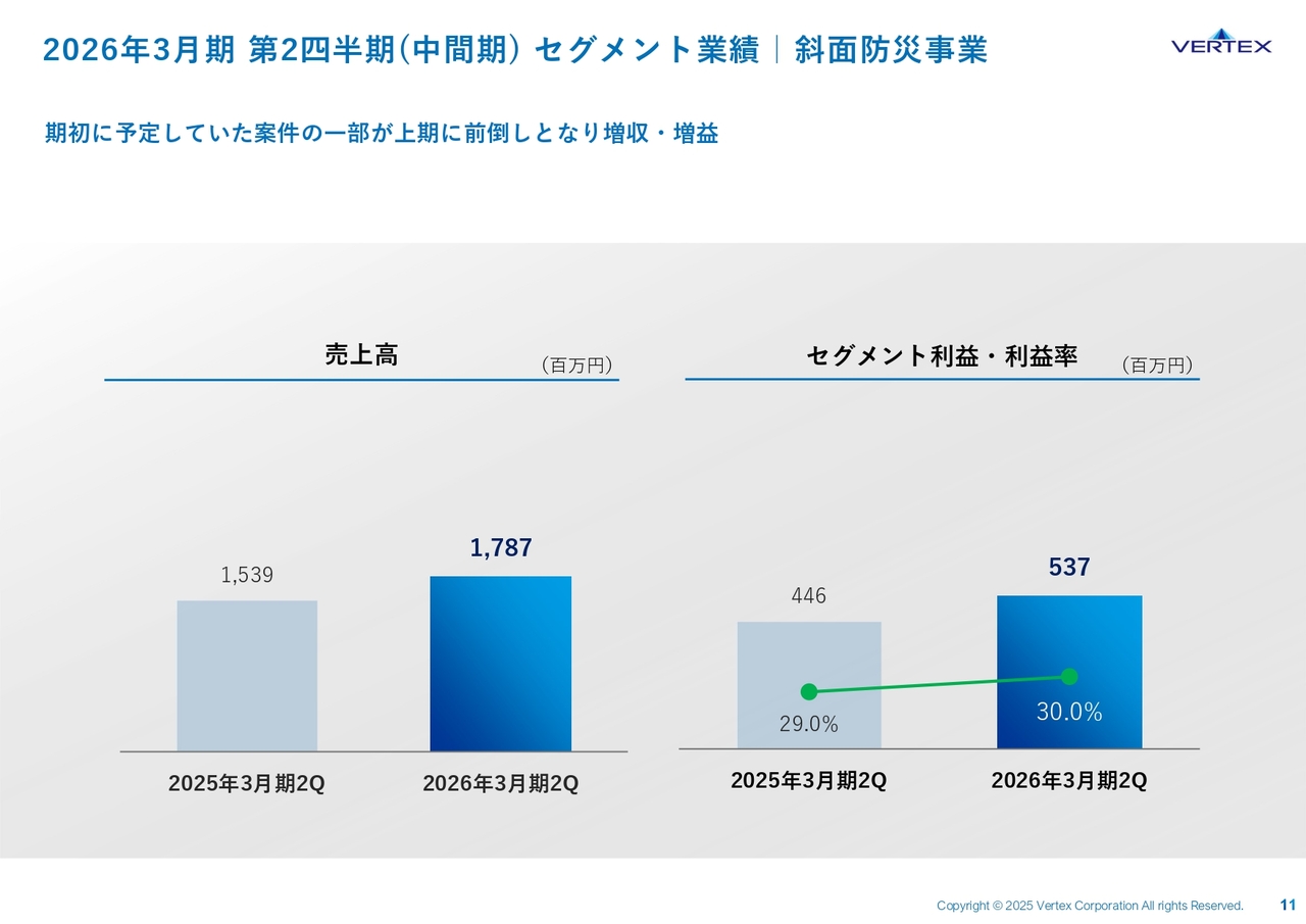 2026年3月期第2四半期(中間期)セグメント業績|斜面防災事業