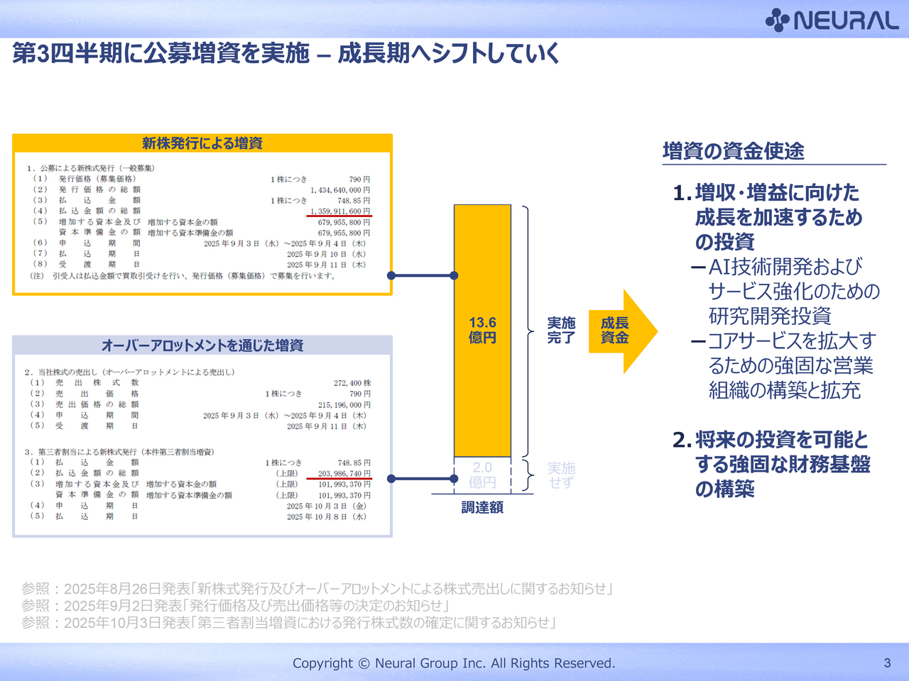 第3四半期に公募増資を実施 – 成長期へシフトしていく