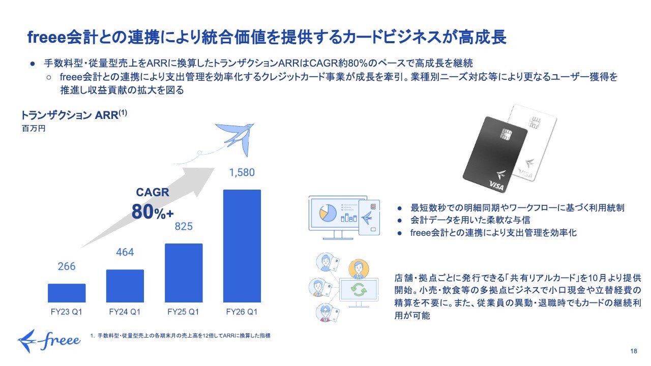 今回から開示するトランザクションARRの大半を占めているのが、この「freeeカードUnlimited」という、コーポレート向けクレジットカード事業の売上です。