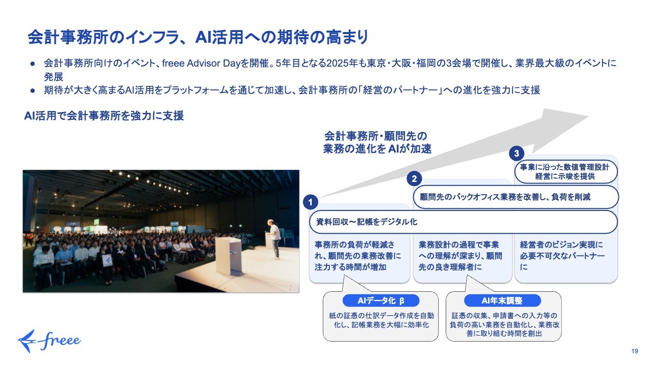 第1四半期には会計事務所向けのオフライン大型イベントとして、5年目となる「freee Advisor Day」を東京・大阪・福岡の3会場で開催しました。このイベントは業界最大級の規模に発展しています。