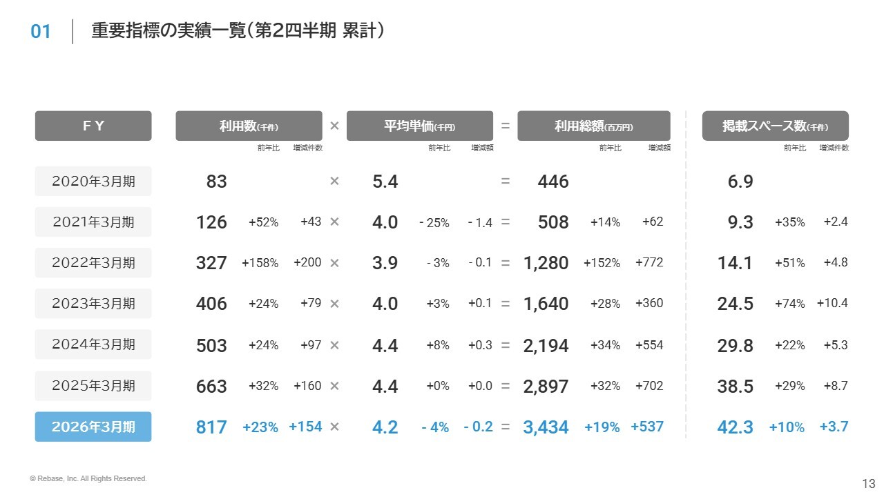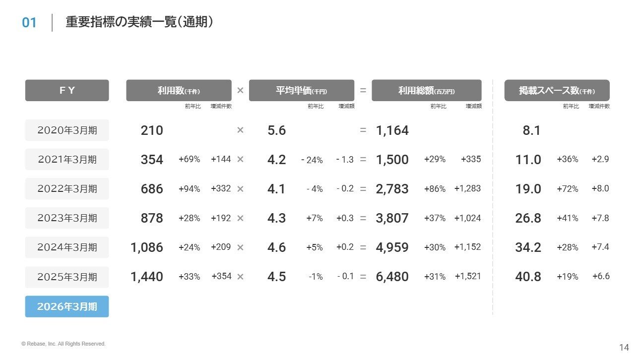 そのため、単価という個別の指標よりも利用数を最大化することに注力する方針に変わりはありません。これまでも、今後も引き続き利用総額の拡大に注力していきます。