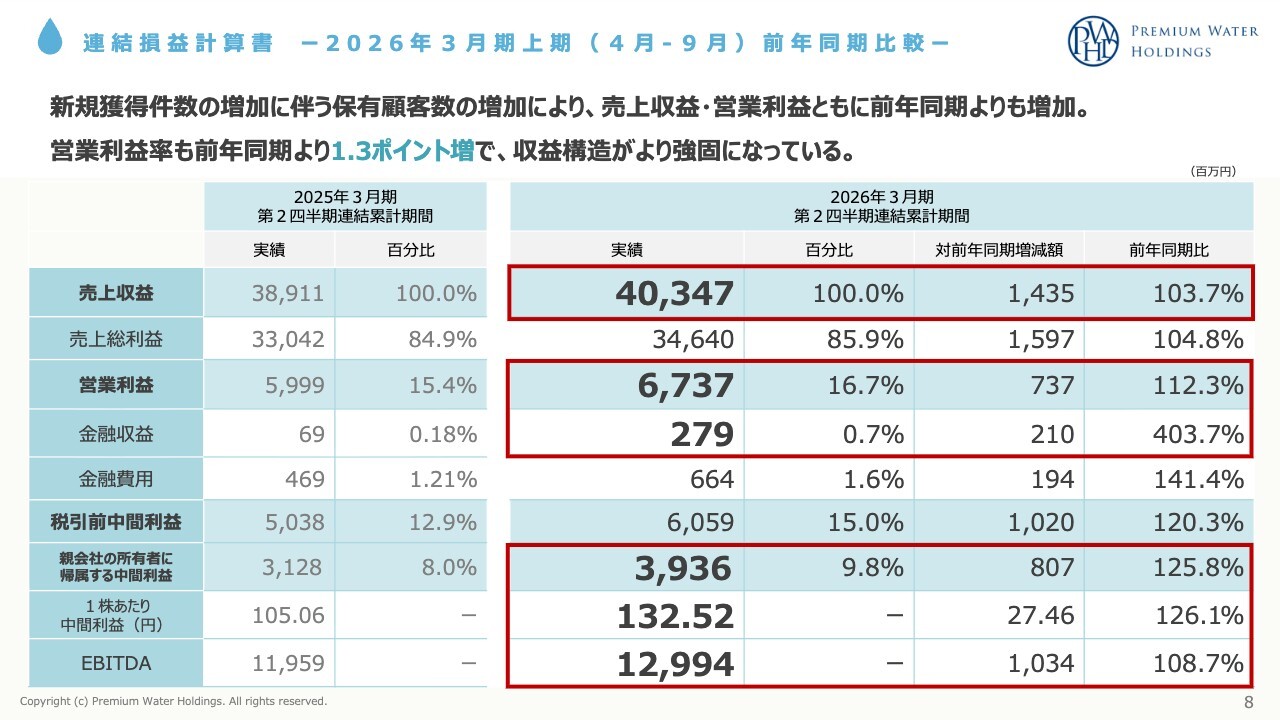 【QAあり】PWHD、上期営業利益は過去最高益で7期連続増益を達成 保有顧客数は179万件で業界シェア32%を堅持