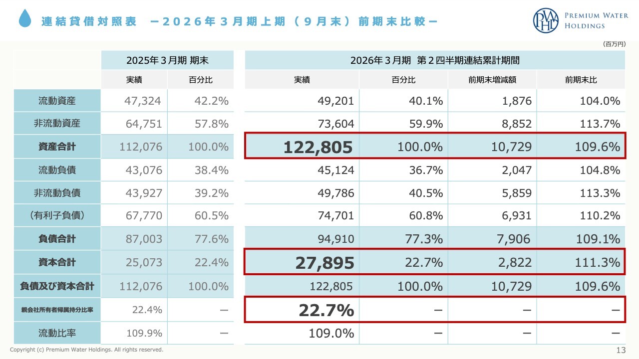 連結貸借対照表 ー2026年3月期上期(9月末)前期末比較ー