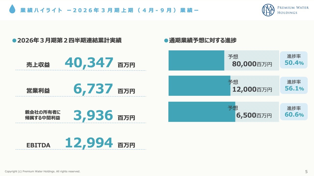 金本彰彦氏(以下、金本):みなさま、こんにちは。プレミアムウォーターホールディングス代表取締役社長の金本です。それでは、2026年3月期上期の決算説明会を開催します。よろしくお願いします。