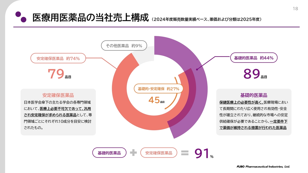 当社の特徴は、「基礎的医薬品」「安定確保医薬品」が売上の大半を占めていることにあります。