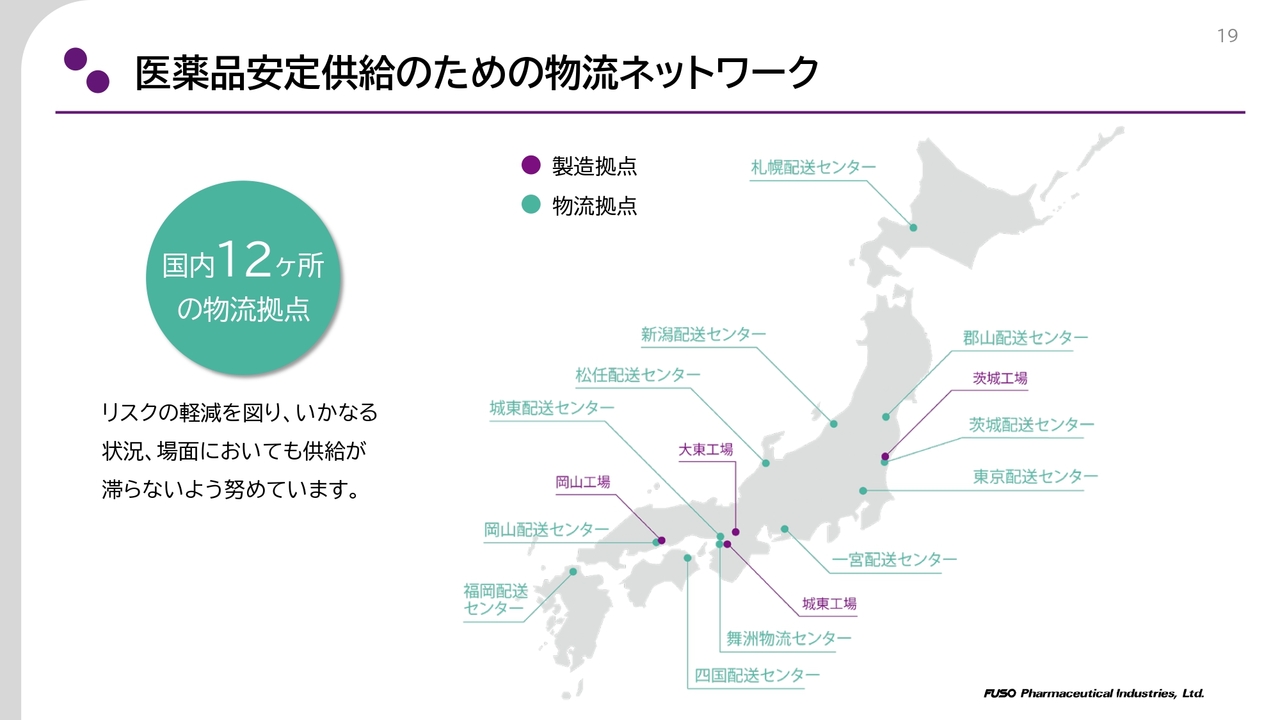 また、在庫確保・安定的な配送を実現するため、物流拠点を全国12ヶ所に構えており、いかなる状況・場面においても供給が滞らず行われるよう、鋭意努力しています。