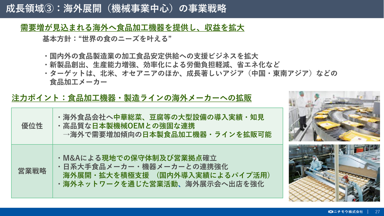 続いて3つ目の成長領域は、機械事業を中心とした海外展開の強化です。