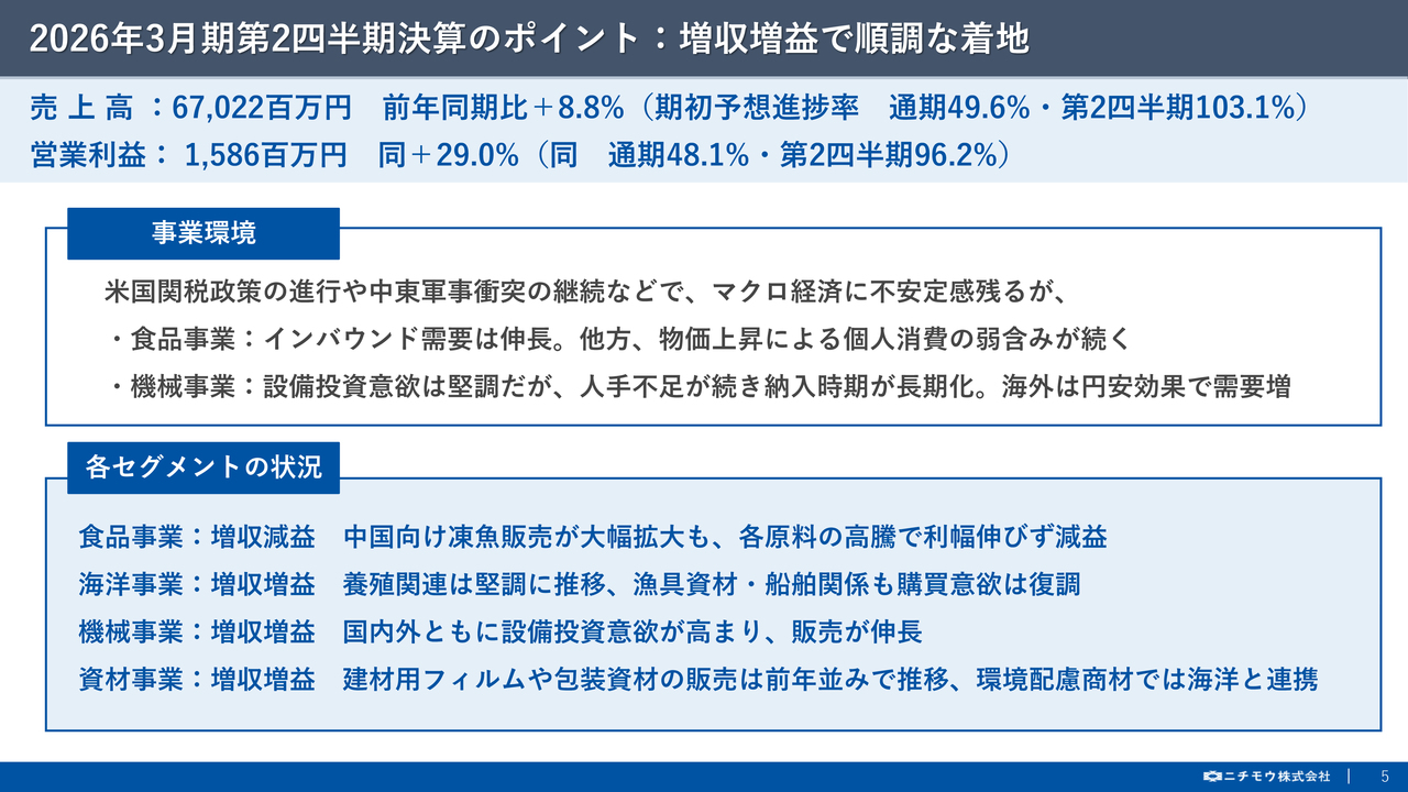 2026年3月期第2四半期決算のポイント:増収増益で順調な着地