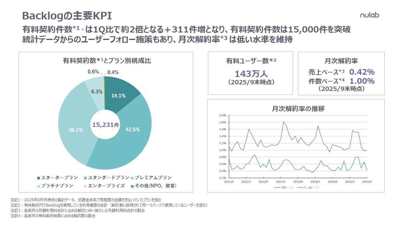 「Backlog」の料金体系はユーザー数無制限のため、有料ユーザー数の増加がトップラインの成長に直結するわけではありませんが、「Backlog」のユーザー増加は将来のリファラルにつながると考えており、これからも大切にしていきたいと思います。