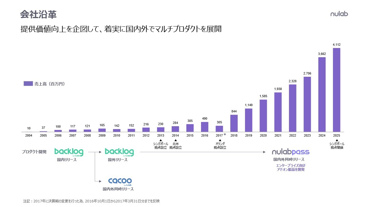 ユーザー数に左右されない料金体系が特徴の「Backlog」をコアプロダクトとして多くの企業や団体に利用していただき、さらに他のヌーラボサービスやオプションを広く活用していただくことで、成長の可能性を秘めています。