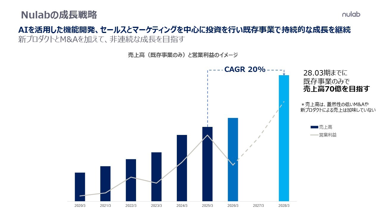 これまでの強みを活かした既存事業の成長に加え、新プロダクトによる成長やM&Aによる非連続的な成長を組み合わせることで、中長期的に売上高100億円の実現を目指していきます。