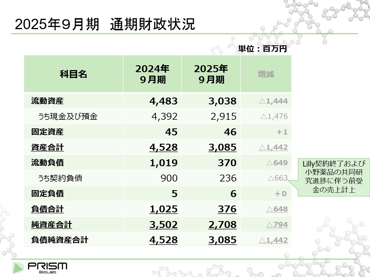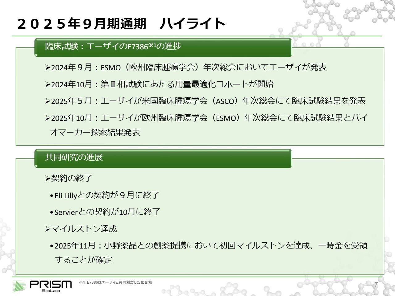 しかし、2025年11月に発表しましたように、小野薬品工業とのプロジェクトについてはマイルストンを達成し、順調に進んでいます。