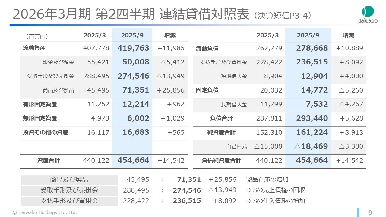 2026年3月期 第2四半期 連結貸借対照表(決算短信P3-4)