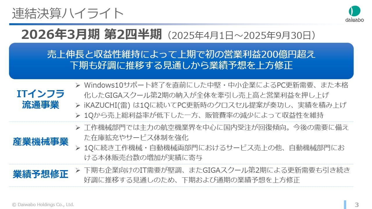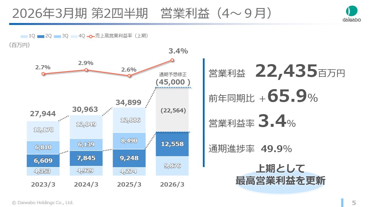 【QAあり】ダイワボウHD、営業利益は上期として初となる200億円超え 好調な業績を踏まえ下期及び通期業績予想を上方修正