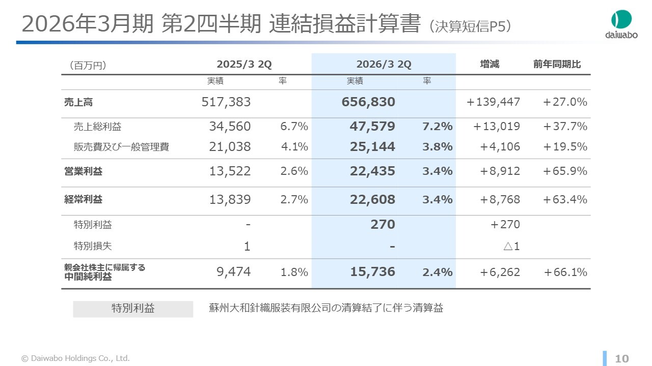 2026年3月期 第2四半期 連結損益計算書 (決算短信P5)
