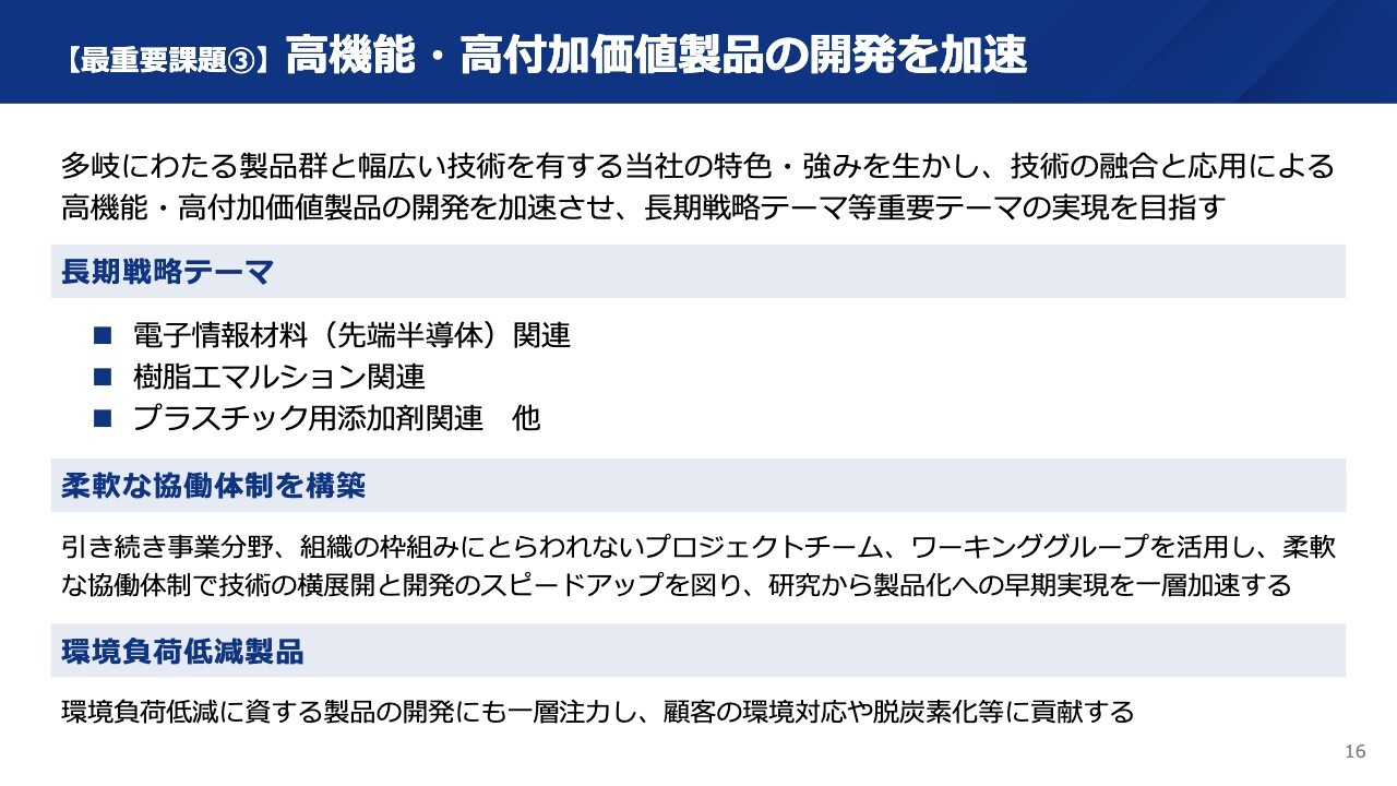 【最重要課題③】高機能・高付加価値製品の開発を加速