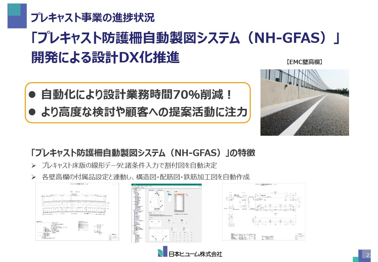設計部門のDX化の取り組みとして「プレキャスト防護柵自動製図システム(NH-GFAS)」についてご紹介します。