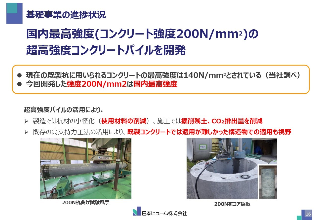 2025年10月20日に発表した、コンクリート強度200ニュートン毎平方ミリメートル(以下、N/平方ミリメートル)の超高強度コンクリートパイルについてご説明します。