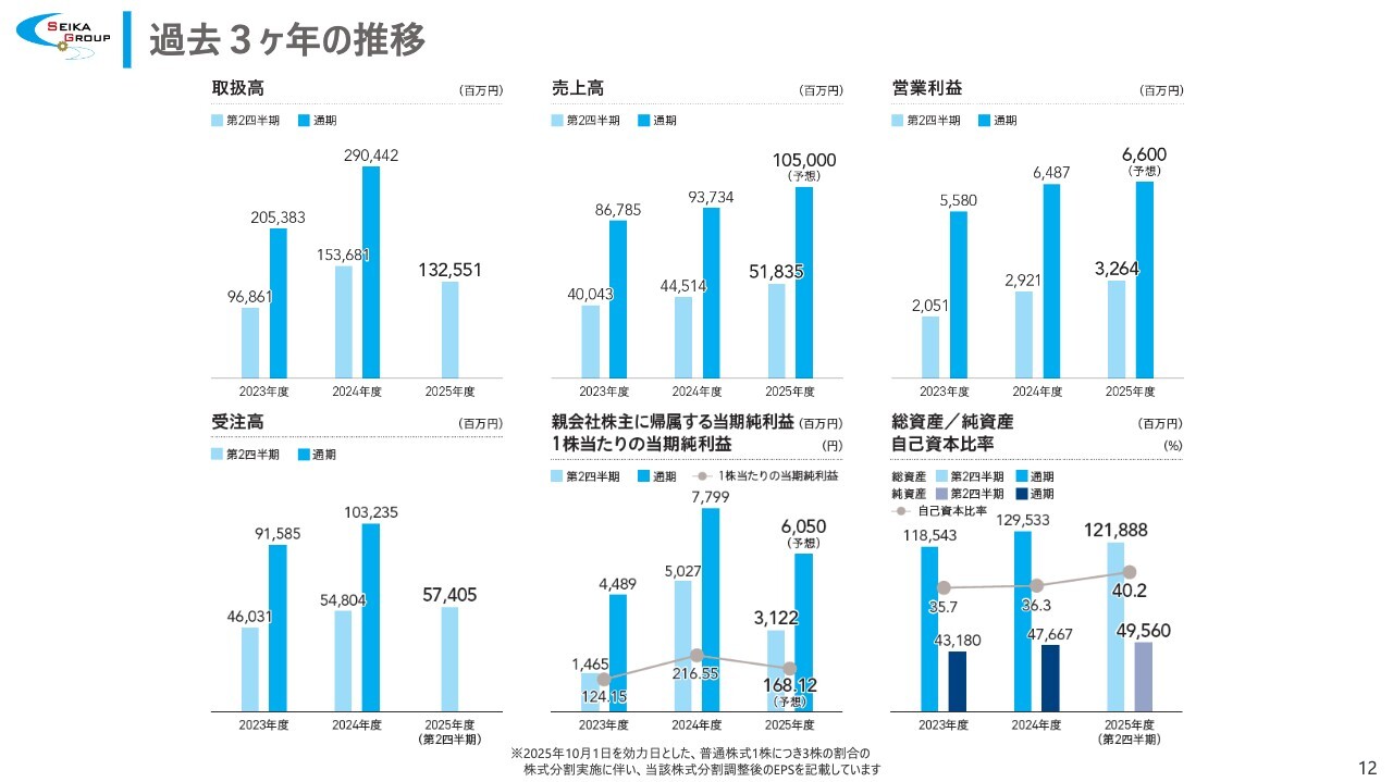 各業績における過去3ヶ年の推移はスライドのとおりです。