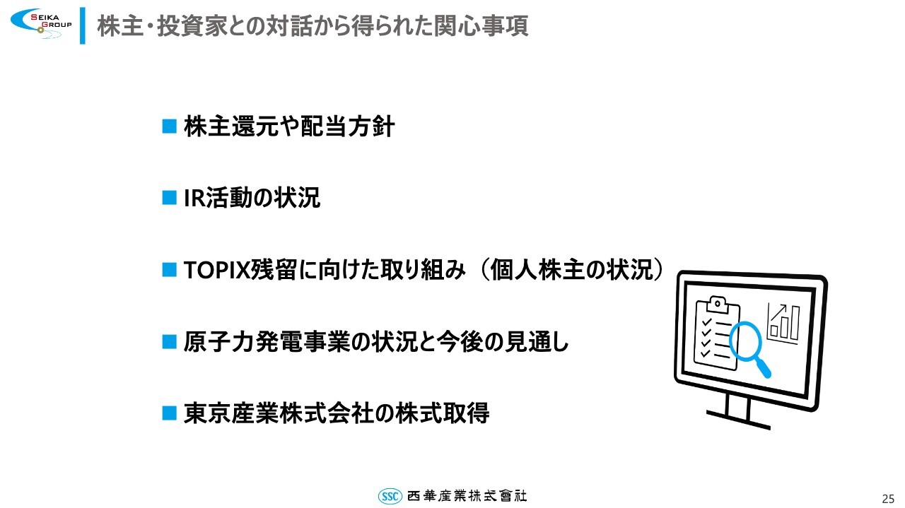 櫻井:株主さまや投資家のみなさまとの対話から得られた関心事項をご紹介します。