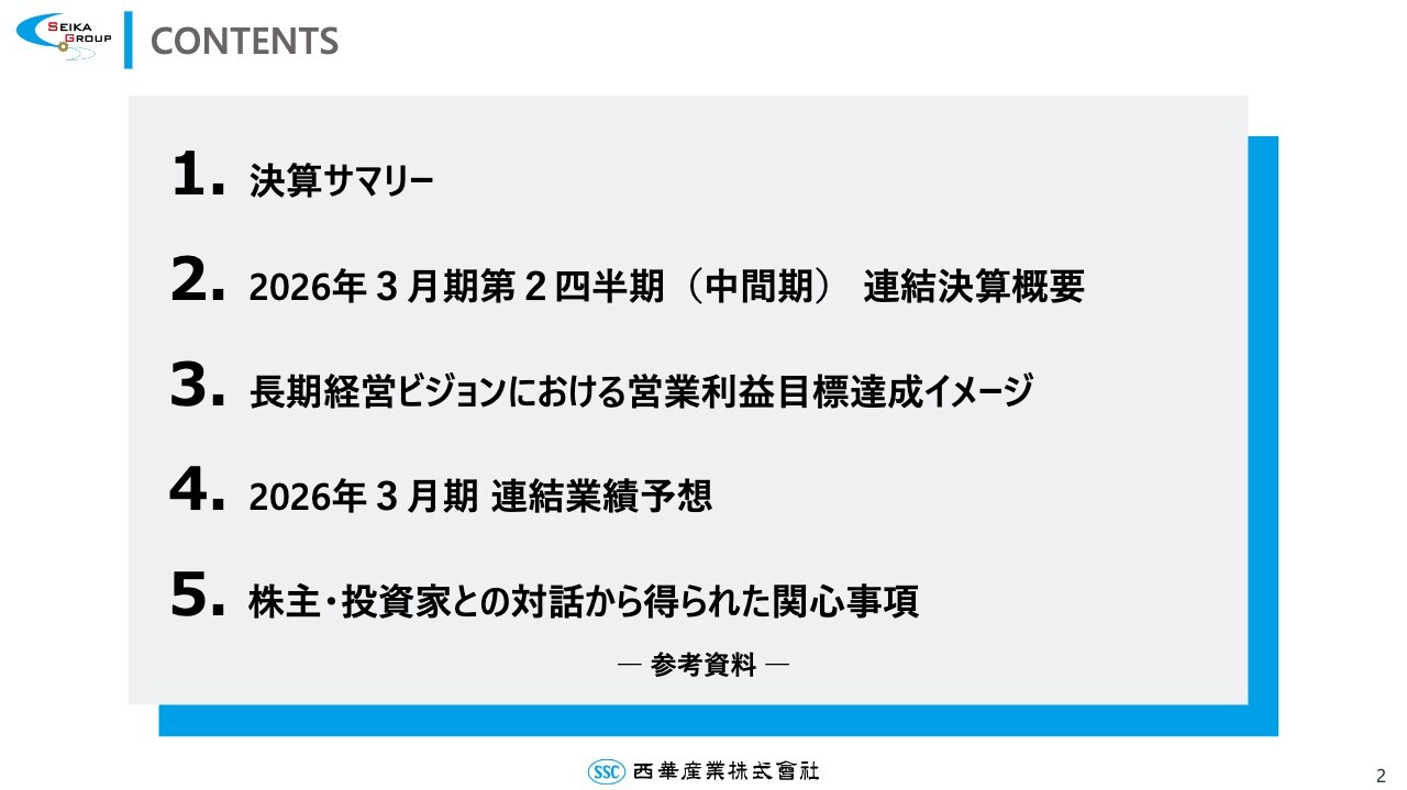 櫻井昭彦氏(以下、櫻井):みなさま、こんにちは。代表取締役社長の櫻井です。本日はお忙しい中、2026年3月期第2四半期の決算説明会にご出席くださり誠にありがとうございます。また日頃より西華産業にご関心をお寄せいただき、重ねて御礼を申し上げます。