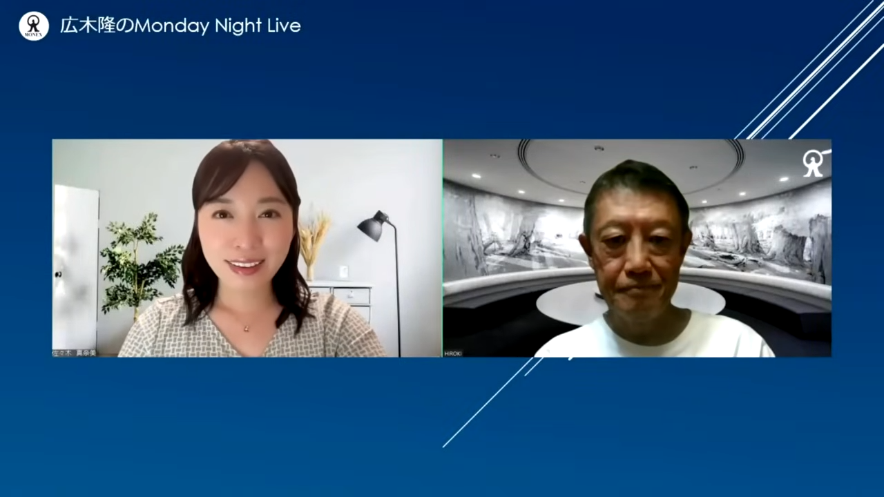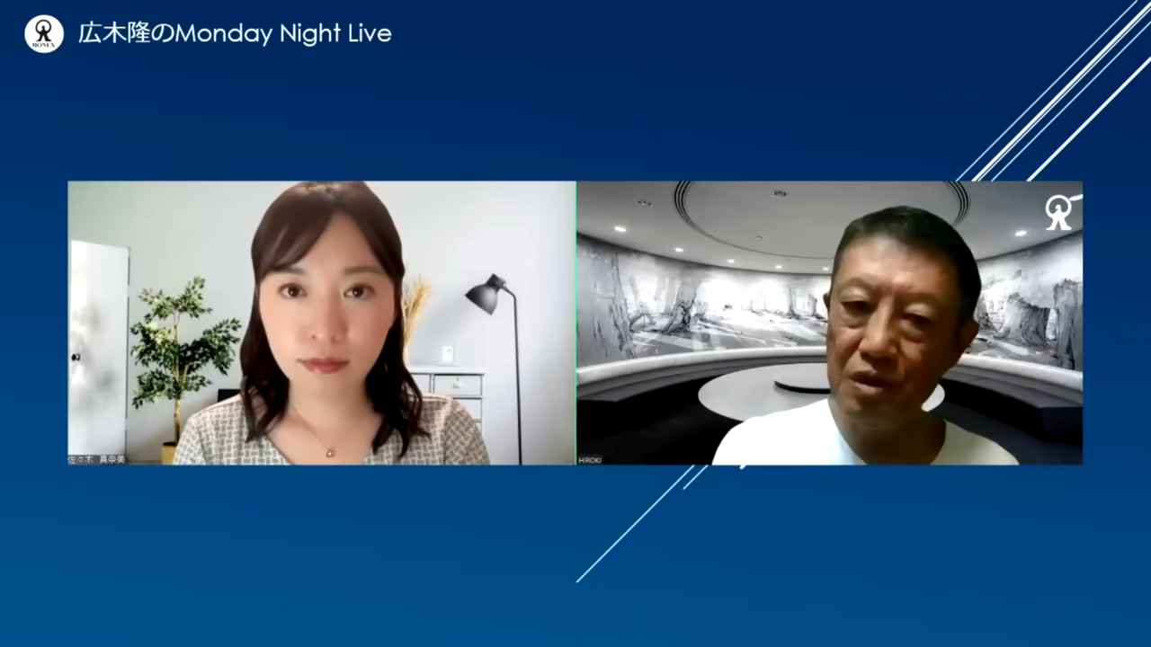 佐々木真奈美氏(以下、佐々木):みなさま、こんばんは。今夜も「広木隆のMonday Night Live」をご視聴いただきありがとうございます。今夜のMCは佐々木真奈美が担当します。広木さん、今夜もよろしくお願いします。