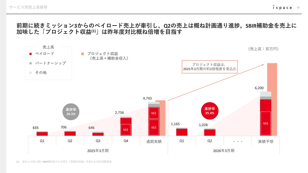 ここまではMission 3の影響が中心です。昨年に比べて、今年の第1四半期および第2四半期ではMission 3の開発がさらに進んでいます。そのため、当社は原価回収基準に基づき売上を計上しており、原価を使用するほど売上も増加するという仕組みになっています。