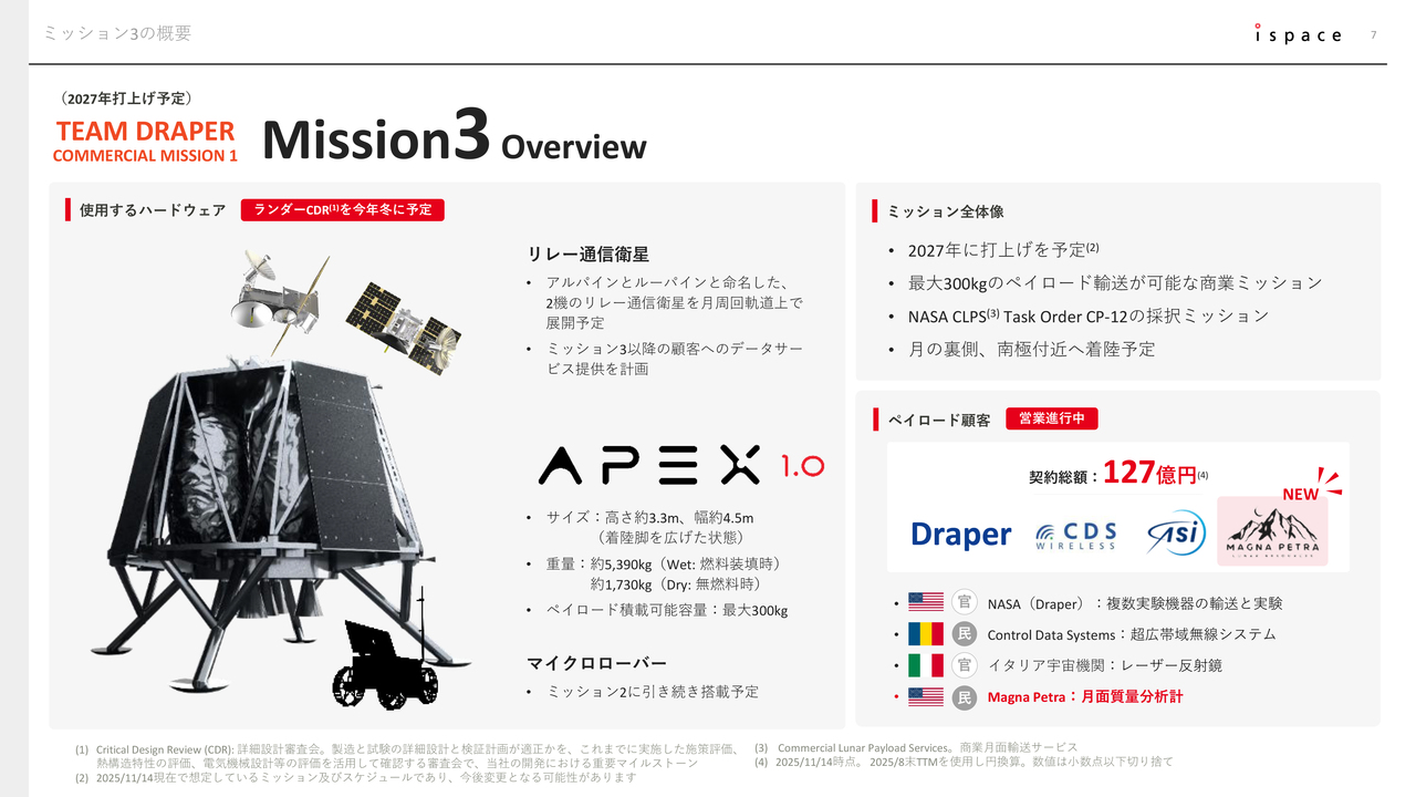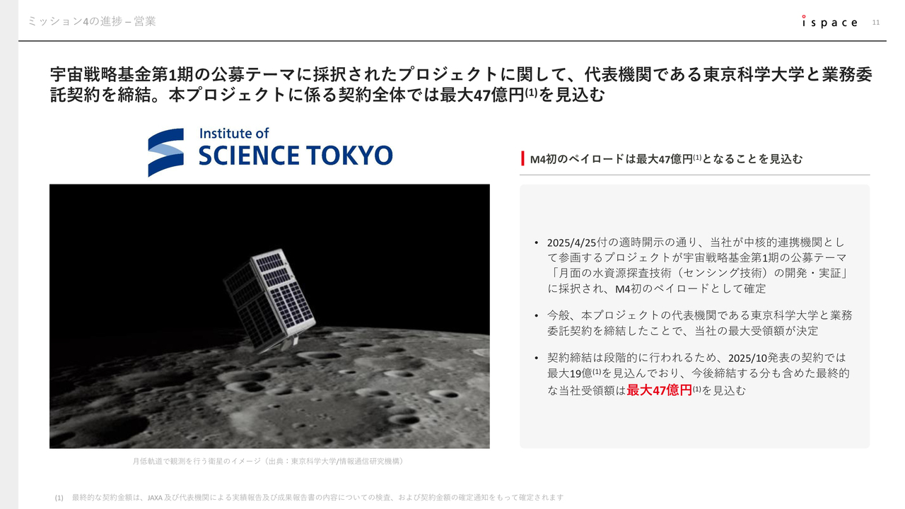 そうした事業環境の追い風も受け、直近ではMission 3およびMission 4における新たなペイロード(荷物)契約を獲得しました。