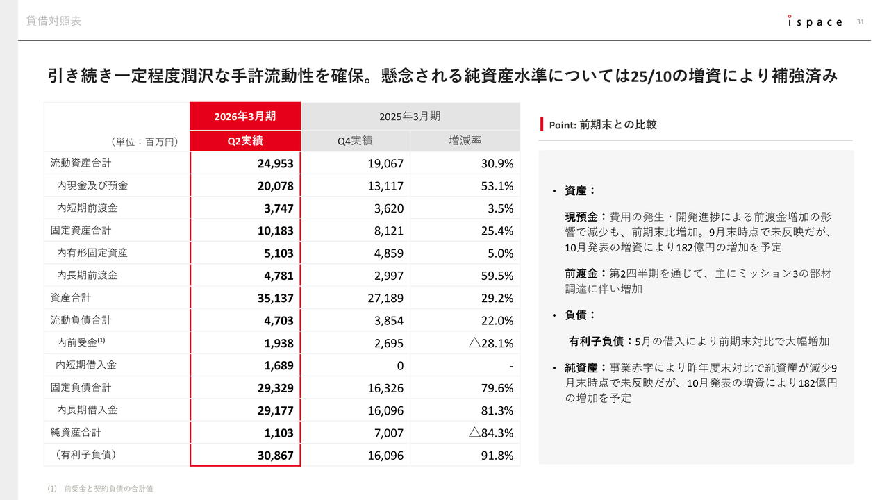 2025年9月末時点の第2四半期における純資産額は約11億円です。この金額は、足元の「商業化初期フェーズ」において予想される重い開発資金負担、具体的にはP/L上の赤字を吸収するには十分とはいえません。