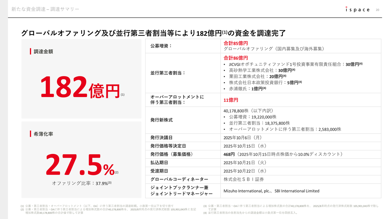 今回の調達は、当社として過去最大規模の増資となります。ご出資いただいたすべての株主のみなさまに深く感謝申し上げます。また、27.5パーセントの希薄化率ということでご心配をおかけしましたが、既存株主のみなさまのご理解に深く御礼申し上げます。ありがとうございます。