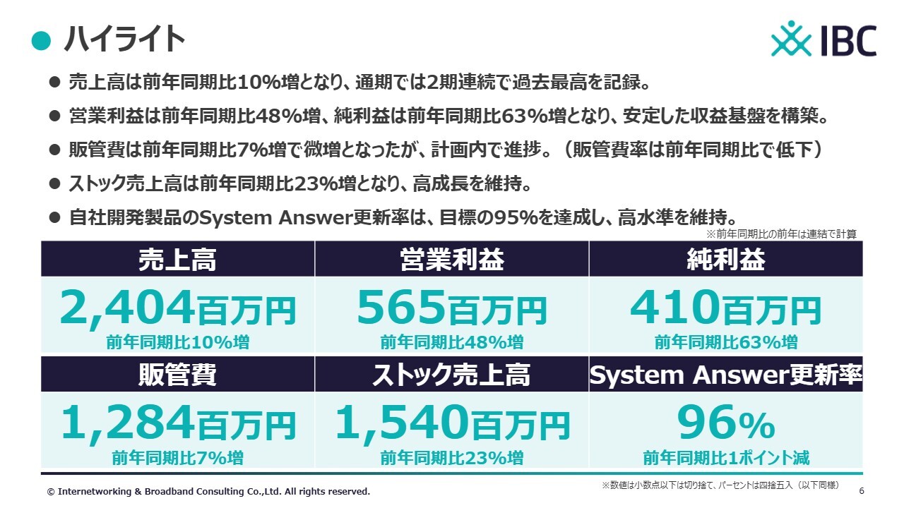 アイビーシー、売上高は2期連続で過去最高、各段階利益も大幅伸長 System Answer更新率は96%と高水準を維持