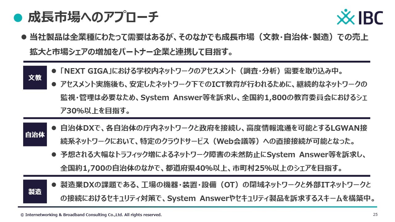 2つ目は、自治体の市場です。自治体DXの推進により、各自治体の庁内ネットワークと政府を接続するLGWAN接続系ネットワークにおいて、Web会議システムなど特定のクラウドサービスへの直接接続が可能になりました。