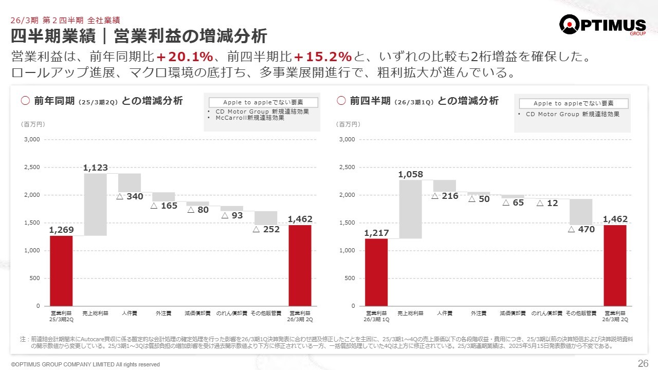 スライドに記載の営業利益の増減分析については、四半期比較のためご説明を省略します。