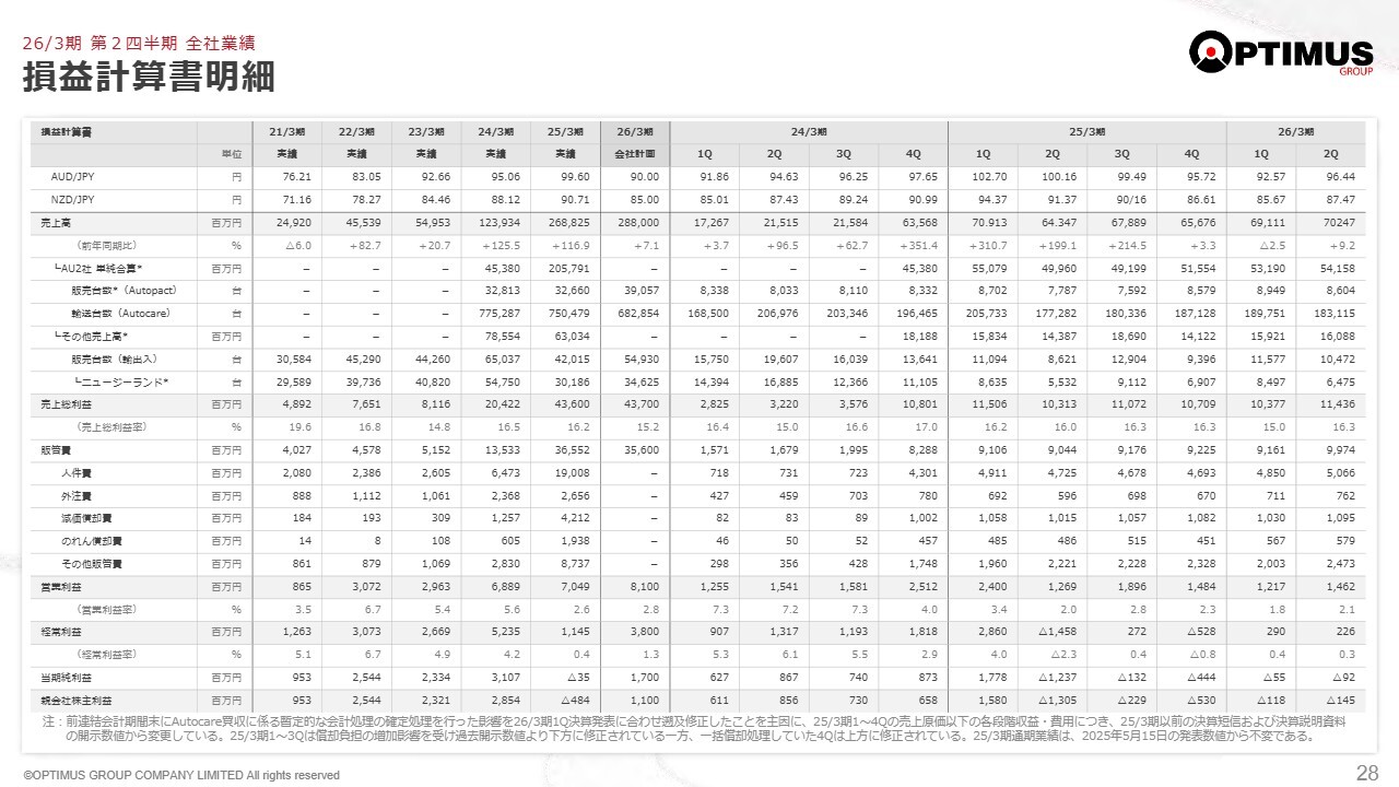 また、Autopactの在庫増加に伴い、清掃などの周辺経費が増加しています。加えて、オーストラリア、ニュージーランドともに物価高の影響があり、これにより経費負担が6,000万円程度増加しています。