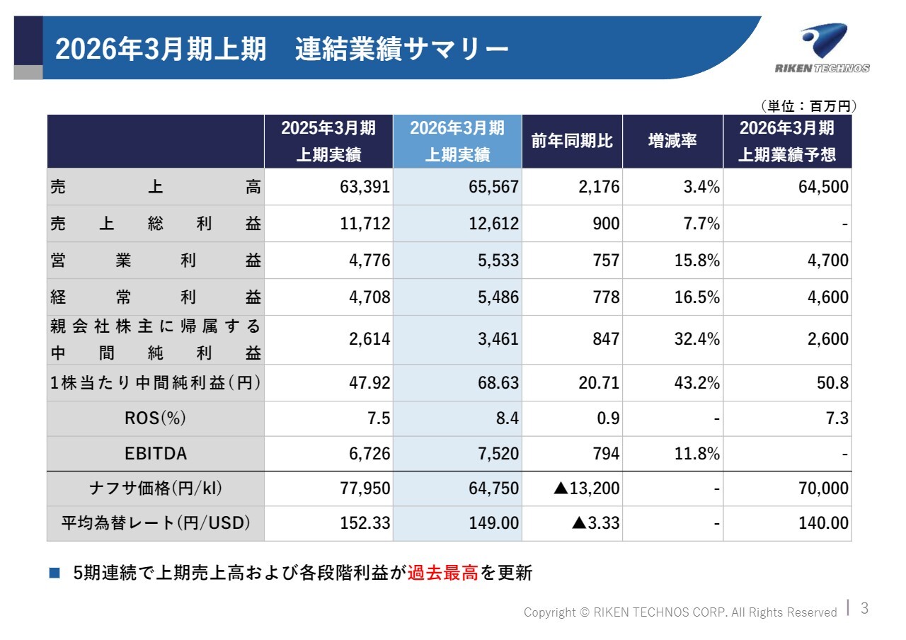 【QAあり】リケンテクノス、5期連続上期売上高・各段階利益が過去最高 株式売却益により当期純利益の通期予想を上方修正