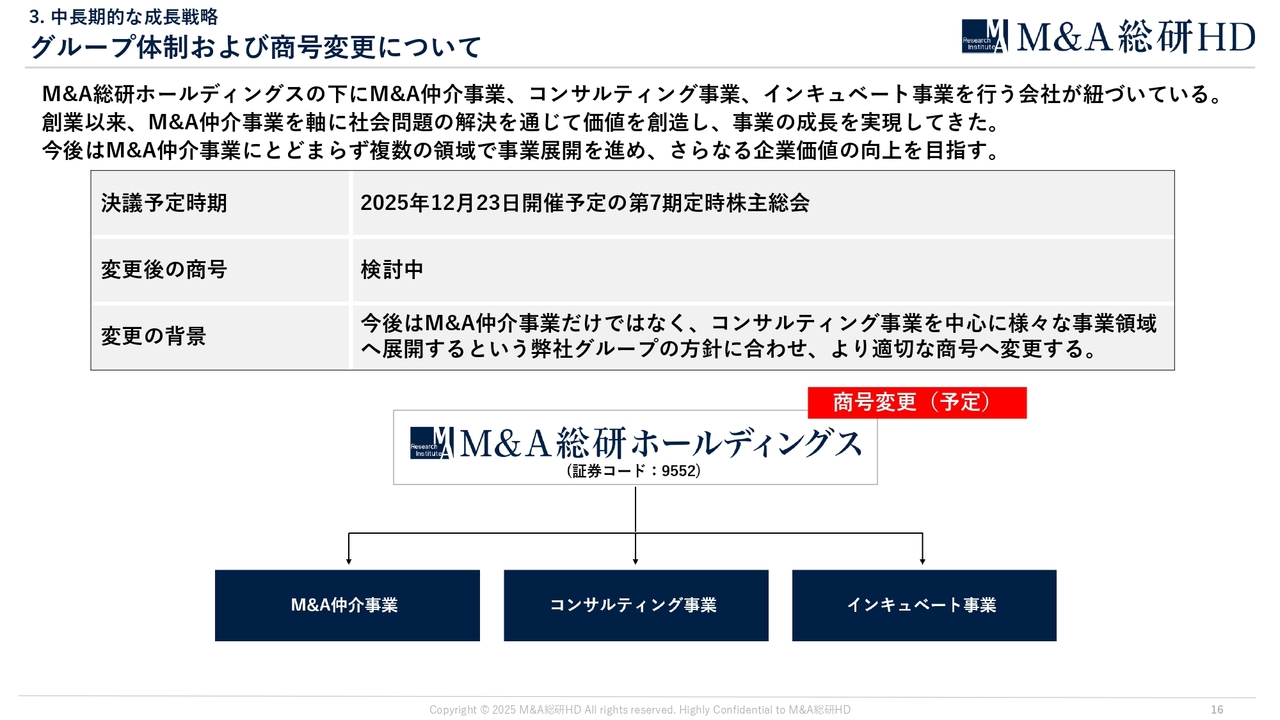 3. 中長期的な成長戦略 グループ体制および商号変更について