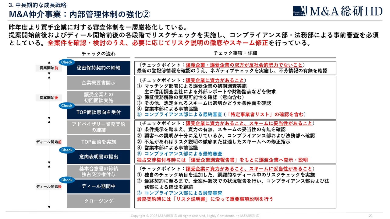 3. 中長期的な成長戦略 M&A仲介事業:内部管理体制の強化②
