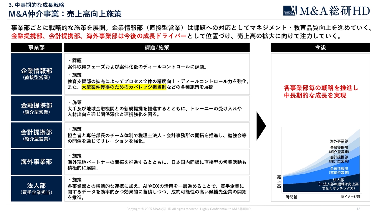 一部では、部署特性にあわせた専属の法人部の設置も進めており、マッチングの一層の強化を進めていきます。このような各種施策を通じて、全社的な成長実現を目指していきます。