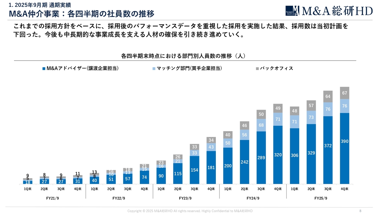 1. 2025年9月期 通期実績 M&A仲介事業:各四半期の社員数の推移