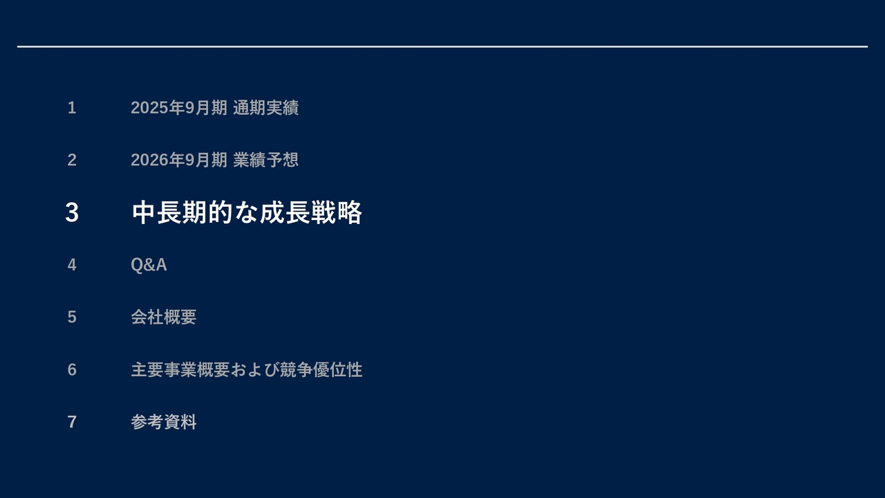 詳細な数値や個別施策については、当社ホームページに掲載の決算説明動画および機関投資家向け説明会の書き起こし記事をご覧ください。本日は、特に今後の成長ストーリーと中長期的な方向性に焦点を当ててご説明します。