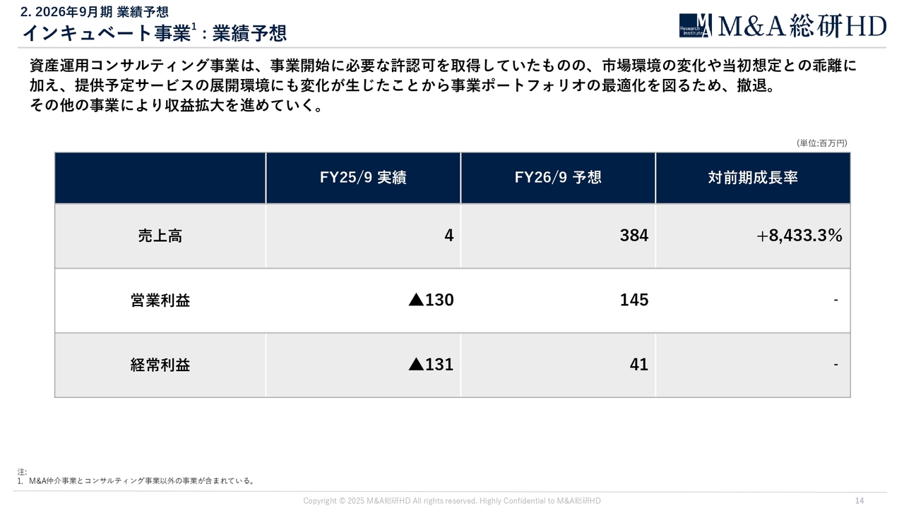 2. 2026年9月期 業績予想 インキュベート事業:業績予想