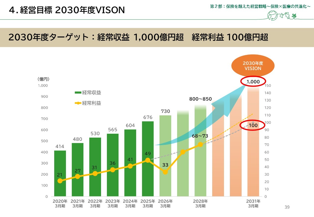 野田:中期経営計画でも公表していますが、5年後の2030年には、経常収益1,000億円超、経常利益100億円超をターゲットにしています。