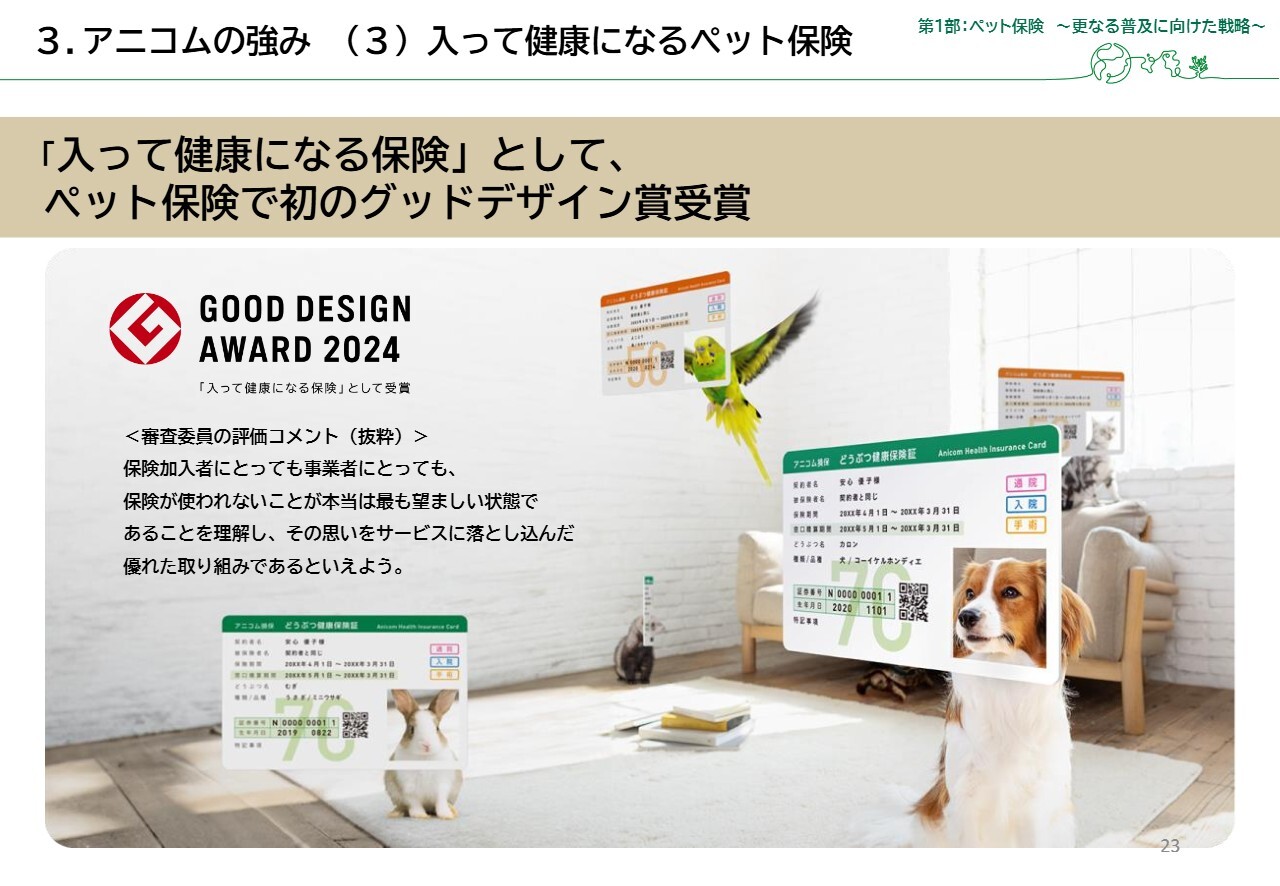 野田:「入って健康になる保険」としてサービスをご評価いただき、昨年、ペット保険で初めてグッドデザイン賞を受賞しました。