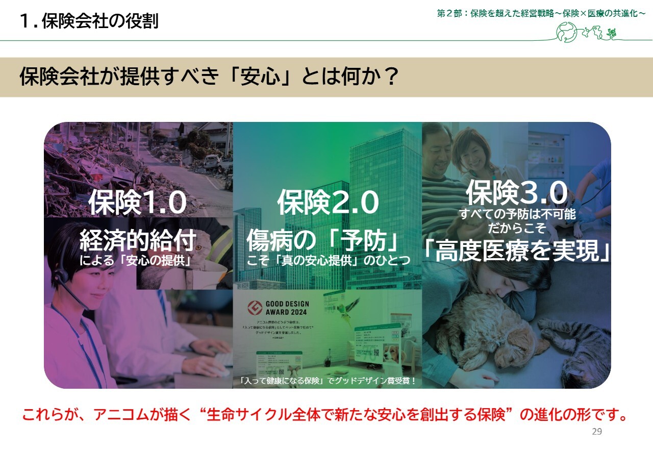 保険を超える新たな戦略を創出して、成長をしっかりと収益につなげ、株主さまのご期待にも応えていきたいと考えています。今後も、アニコムの歩みにご期待くださいますようお願いいたします。本日は、ご清聴ありがとうございました。